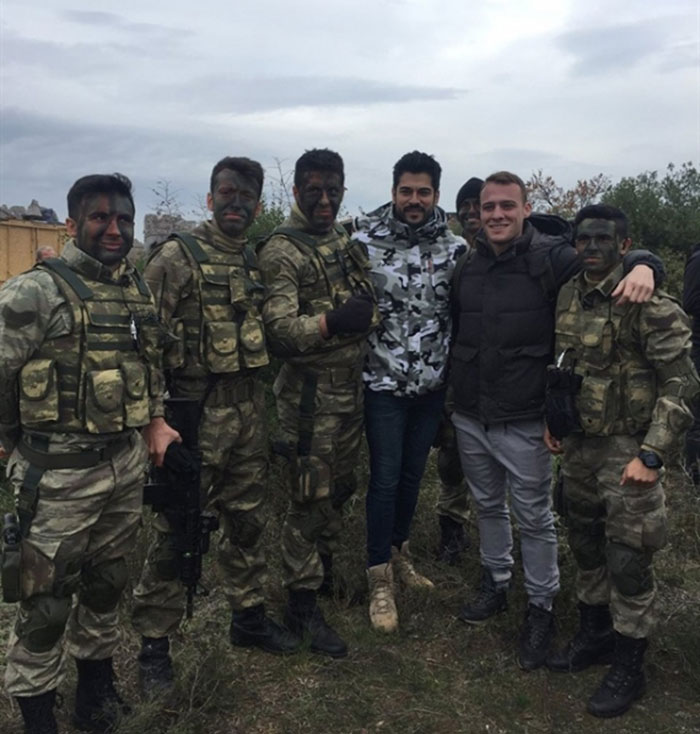 Yeni filmleri 'Can Feda' için son hızla çalışan Burak Özçivit ve Kerem Bürsin, 2017'nin son günü sette 2018'i evlerinden uzakta karşılayan askerlere sürpriz yaparak moral verdiler.