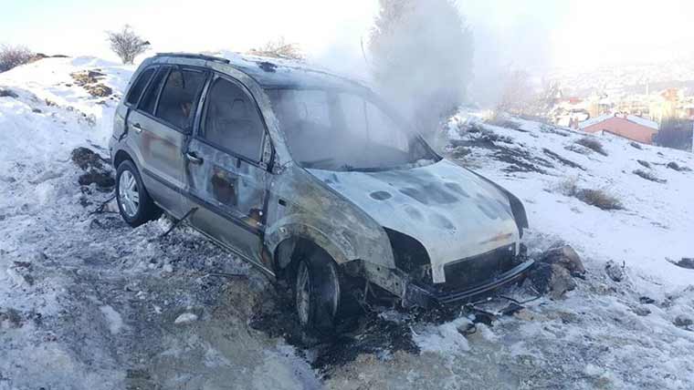 Kütahya'da park halindeyken alev alan otomobil kullanılmaz hale geldi.
