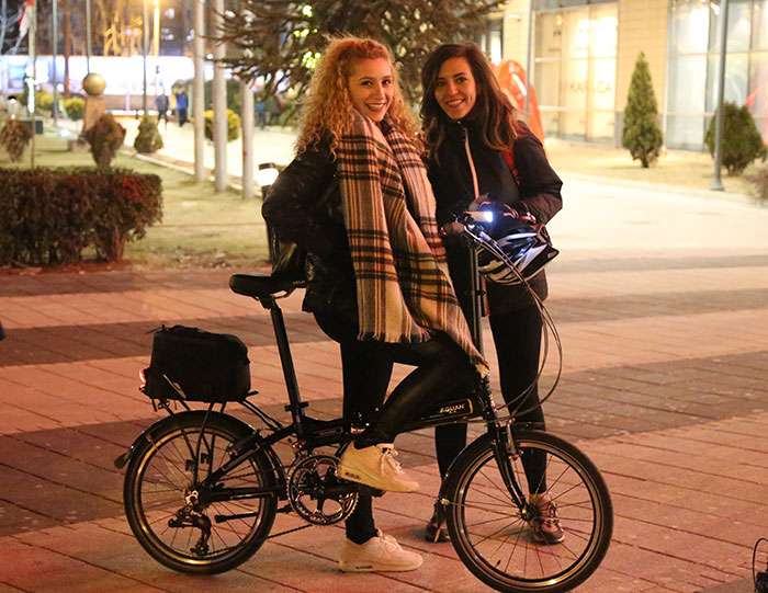 Eskişehir'de bir alışveriş merkezinin önünde buluşan çoğu bisikletli vatandaşlar, "14 Şubat Sevgililer Günü" dolayısıyla birbirlerine hediye almak yerine "Bisiklet aşktır. Aşıksan bas pedala" sloganıyla pedal çevirdi.