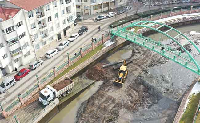 Eskişehir’in en önemli simgelerinden biri olan ve kenti ortadan ikiye bölen Porsuk Çayı’nda dip temizliği çalışmaları hız kesmeden devam ediyor.