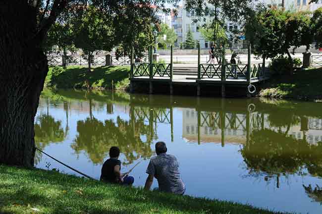 Parkın ortasından geçen Porsuk Çayı kenarındaki ağaçların gölgesinde serinleyen vatandaşlardan bazılar da oltalarını yanlarında getirerek balık tuttu.