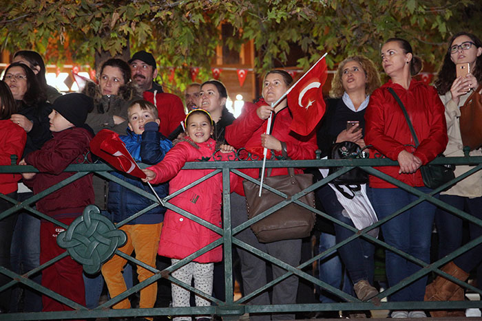 Cumhuriyet'in ilanının 94. yıl dönümü kutlamaları Porsuk Çayı üzerinde botlarla fener alayı ve havai fişek gösterisiyle kutlandı.