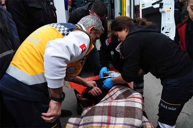 Sudan çıkarılmasının ardından soğuğun etkisiyle titreyen yaşlı adama sağlık ekipleri tarafından olay yerinde ilk müdahale yapıldı.