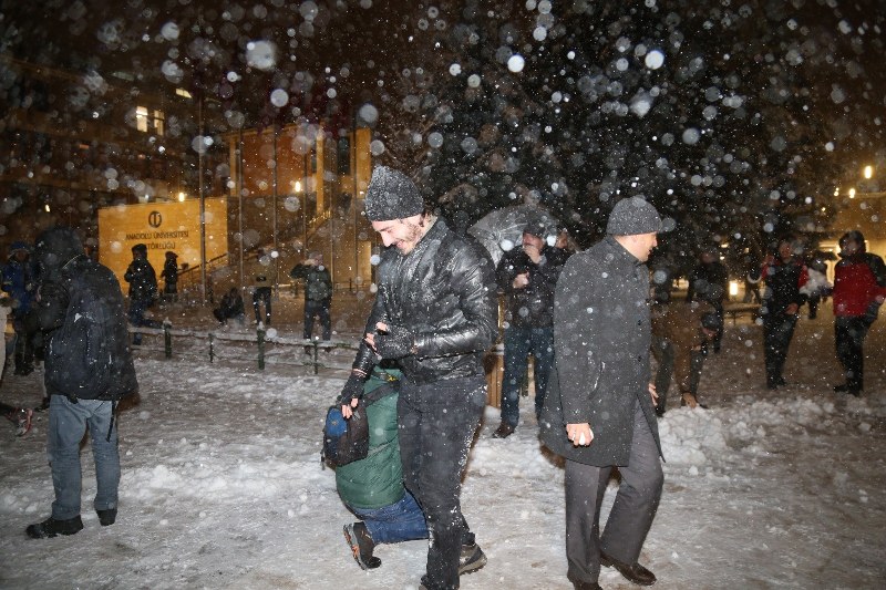 Rektör öğrencilerle kartopu oynadı