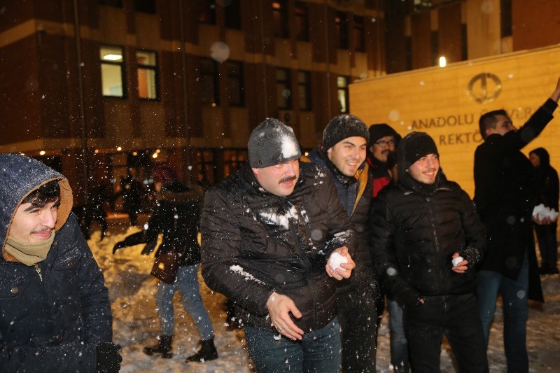 Anadolu Üniversitesi Rektörü Prof. Dr. Şafak Ertan Çomaklı, öğrencilerle kartopu oynadı.