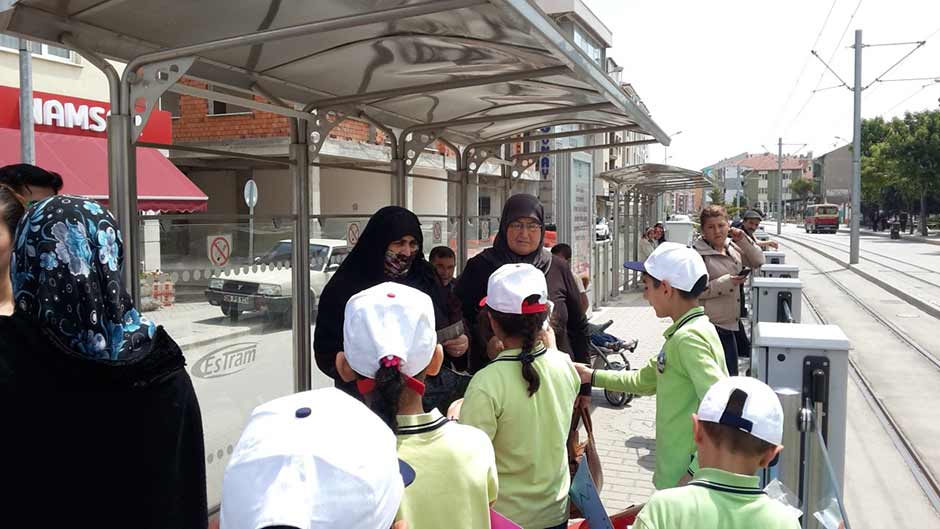 Eskişehir’de trafik kuralları ve yaya güvenliğine dikkat çekmek isteyen 1. Hava İkmal Bakım Merkezi İlkokulu öğrencileri, pankartlar eşliğinde yürüyüp, sürücülere karanfil dağıttı.