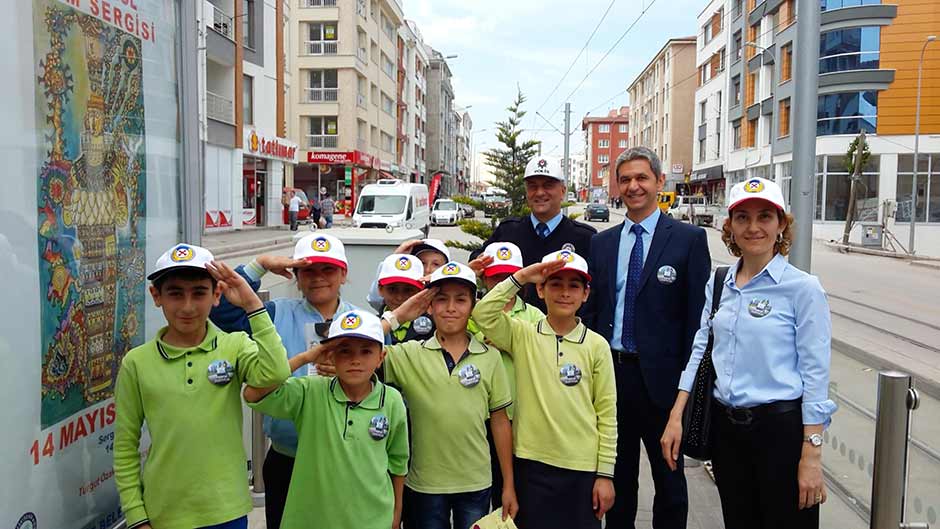 Eskişehir’de trafik kuralları ve yaya güvenliğine dikkat çekmek isteyen 1. Hava İkmal Bakım Merkezi İlkokulu öğrencileri, pankartlar eşliğinde yürüyüp, sürücülere karanfil dağıttı.