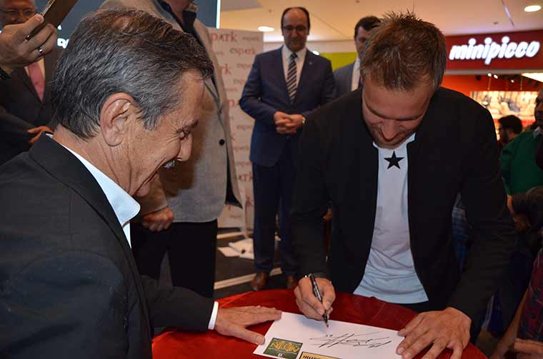 Eskişehirspor-Ümraniyespor maçında 70 metreden gol atan kaleci Ruud Boffin'in ayak ve el izi "Altın ayaklar" projesine dahil edildi.