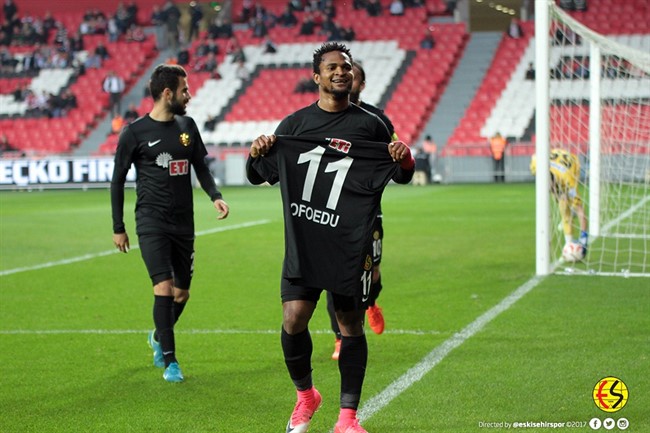 TFF 1. Lig’in 14. Haftasında Samsunspor deplasmanına Eskişehirsporumuz adeta şov yaptı ve maçı 4-0 kazandı. Haftaiçi futbolcumuz Ofoedu'nun aklını karıştırmak isteyen Samsunspor ve Samsun basınına ise en güzel cevabı 2 gol atarak galibiyeti getiren Ofoedu verdi.