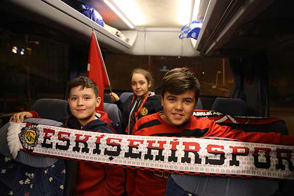 Tribünlerde yaptıkları görsel şovlarla Türk futbolseverlerin beğenisini kazanan Eskişehirspor taraftarının sazlı sözlü son deplasman yolculuğu AA tarafından görüntülendi.