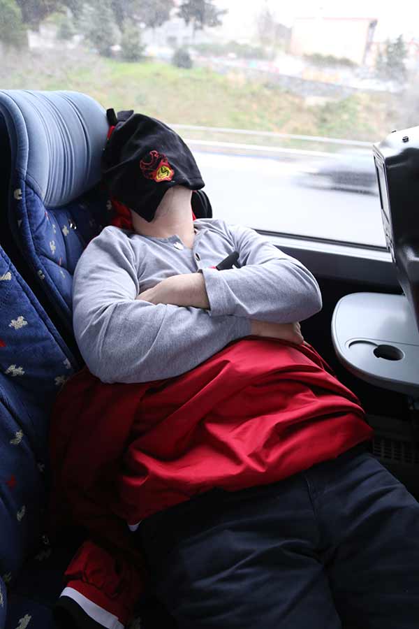 Tribünlerde yaptıkları görsel şovlarla Türk futbolseverlerin beğenisini kazanan Eskişehirspor taraftarının sazlı sözlü son deplasman yolculuğu AA tarafından görüntülendi.