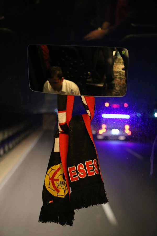 Tribünlerde yaptıkları görsel şovlarla Türk futbolseverlerin beğenisini kazanan Eskişehirspor taraftarının sazlı sözlü son deplasman yolculuğu AA tarafından görüntülendi.