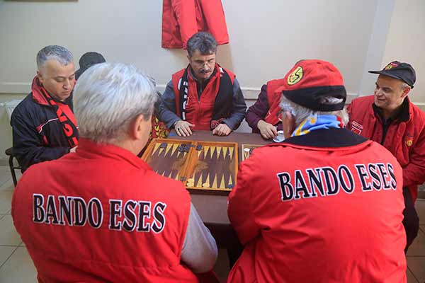 Tribünlerde yaptıkları görsel şovlarla Türk futbolseverlerin beğenisini kazanan Eskişehirspor taraftarının sazlı sözlü son deplasman yolculuğu AA tarafından görüntülendi.