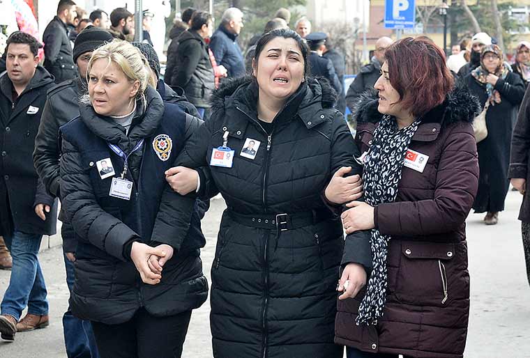 Diyarbakır'da dünkü hain saldırıda şehit olan polis memuru Eskişehirli Ali Sevim, kılınan cenaze namazının ardından son yolcuğuna uğurlandı.