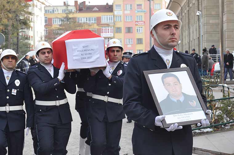 Diyarbakır'da dünkü hain saldırıda şehit olan polis memuru Eskişehirli Ali Sevim, kılınan cenaze namazının ardından son yolcuğuna uğurlandı.