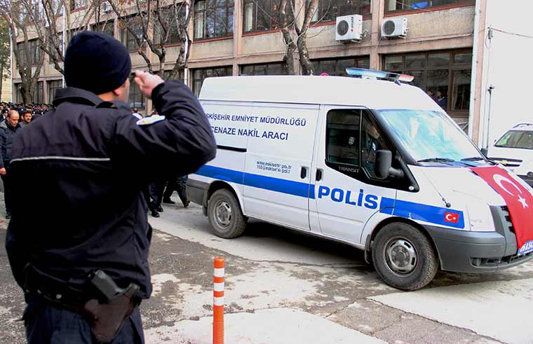 Diyarbakır'da dünkü hain saldırıda şehit olan polis memuru Eskişehirli Ali Sevim, kılınan cenaze namazının ardından son yolcuğuna uğurlandı.