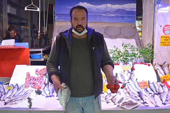 Balığa kışınki gibi büyük rağbet olmaz ama yine de tezgâhımızda çeşitli balığımız bulunur. Fiyatlarda biraz oynama olur. Sezon bittiği ve büyük kayıklar çekildiği için fiyatlarda yükselme olur. Korona virüs çıktığı zaman insanlar balığa çok talep gösterdiler. Yazın bile olsa vatandaşımız balık yiyorlardı. Ama şu an biraz yavaşlamış durumda.”