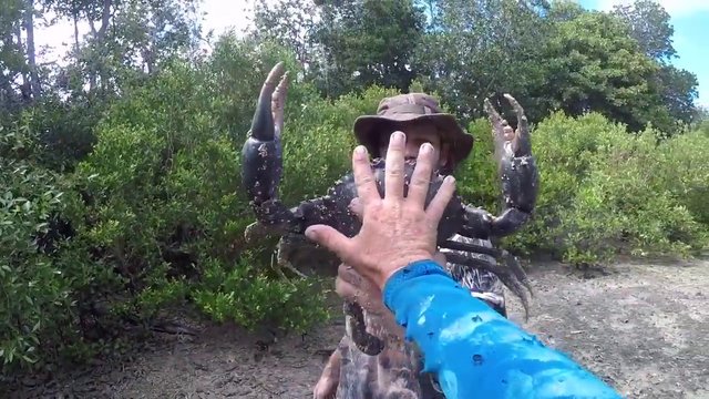 Avustralyalı bir adam, toprağın altından devasa boyutta bir yengeç çıkardı. O anlar kameralara böyle yansıdı...