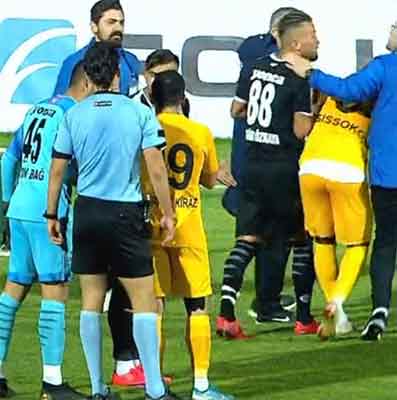 Özellikle Özgür Özkaya'nın Sissoko'yu iterek saha dışına çıkarma çabasına kızan oyuncumuz, Özgür'ü ittirerek yere düşürdü