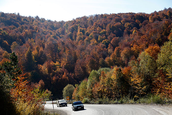 Kütahya'nın Domaniç ilçesi dağlarında sonbaharda yaşanan renk cümbüşü, fotoğrafçılar tarafından ölümsüzleştiriliyor.
