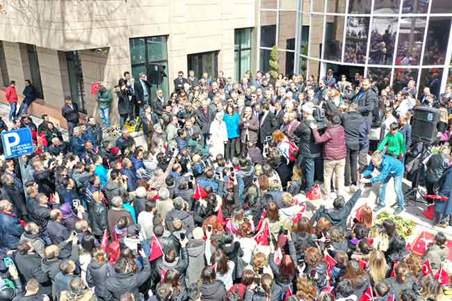 Gerçekleşen yerel seçimler sonucunda Eskişehir’de hem merkezde hem kırsalda oyunu arttırarak 5. dönemine giren Büyükşehir Belediye Başkanı Prof. Dr. Yılmaz Büyükerşen, personeli tarafından belediye önünde büyük bir coşkuyla karşılandı.