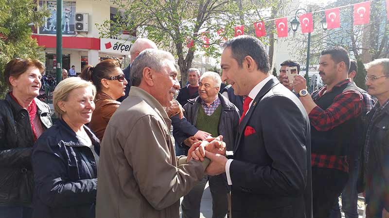 CHP İl Başkanı Sinan Özkar ve Odunpazarı Belediye Başkanı Kazım Kurt ile birlikte, halkı bilgilendirmek adına açılan hayır stantlarını gezen Eskişehir Milletvekili Cemal Okan Yüksel; Özkar ve Kurt ile birlikte Taşbaşı’ndaki evet standını da ziyaret etti.
