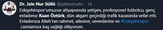 Eskişehirspor U-19 takımında forma giyen genç oyuncu Kaan Öztürk, dün akşam geçirdiği trafik kazası sonrasında yaşamını yitirdi. Eskişehir ve Eskişehirspor'u yasa boğan bu ölüm haberinin ardından spor camiası sosyal medyadan taziyelerini böyle paylaştı...