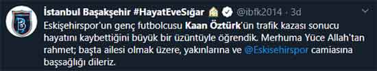 Eskişehirspor U-19 takımında forma giyen genç oyuncu Kaan Öztürk, dün akşam geçirdiği trafik kazası sonrasında yaşamını yitirdi. Eskişehir ve Eskişehirspor'u yasa boğan bu ölüm haberinin ardından spor camiası sosyal medyadan taziyelerini böyle paylaştı...