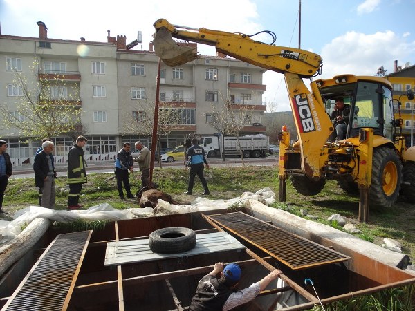 Alınan bilgiye göre, Fatma Demirsoy isimli kadın, yetkililere danasının silo içeresine düştüğü ihbarında bulundu.