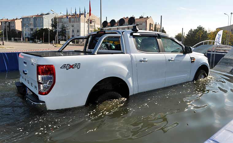 Ford Otosan tarafından Türkiye'de ilk defa uygulanan "su geçişli parkur test sürüşü" etkinliği Eskişehir'de başladı.