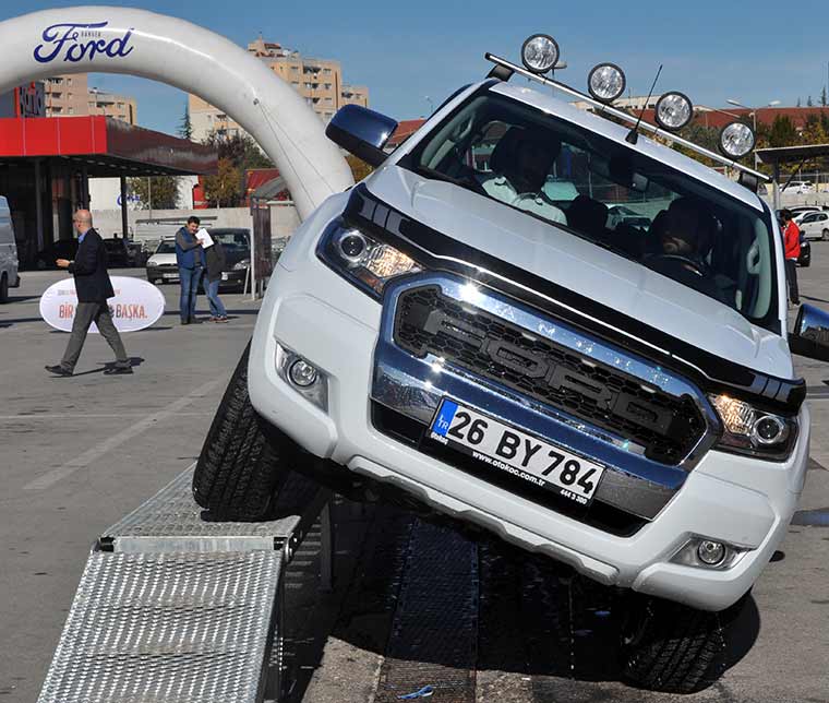 Ford Otosan tarafından Türkiye'de ilk defa uygulanan "su geçişli parkur test sürüşü" etkinliği Eskişehir'de başladı.