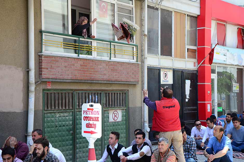 Eskişehir'de yaşayan 61 yaşındaki Süreyya Taştekin, her Cuma namazında balkonundan sarkıttığı kilim ve seccadeler ile, dışarıda namaz kılmak zorunda kalan cemaatin temiz zeminde ibadetini yapmasını sağlıyor.