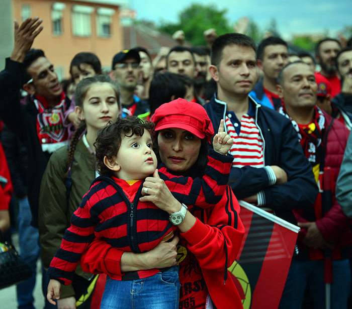 Eskişehirspor taraftarı, siyah-kırmızılı takımın TFF 1. Lig play-off yarı final ilk maçında Giresunspor ile deplasmanda 3-3 berabere kaldığı karşılaşmayı dev ekranlardan izledi.