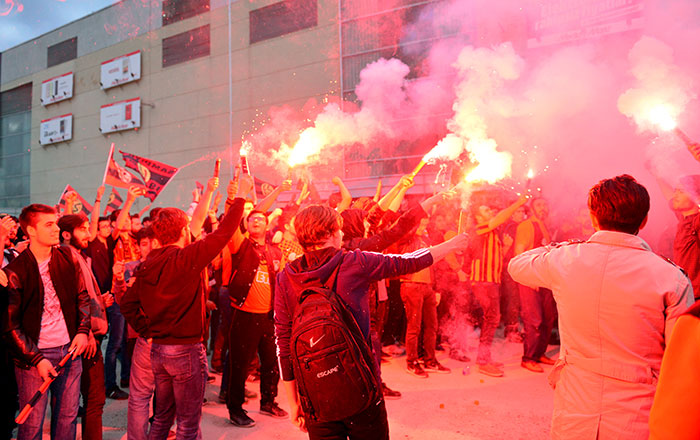 Eskişehirspor taraftarı, siyah-kırmızılı takımın TFF 1. Lig play-off yarı final ilk maçında Giresunspor ile deplasmanda 3-3 berabere kaldığı karşılaşmayı dev ekranlardan izledi.