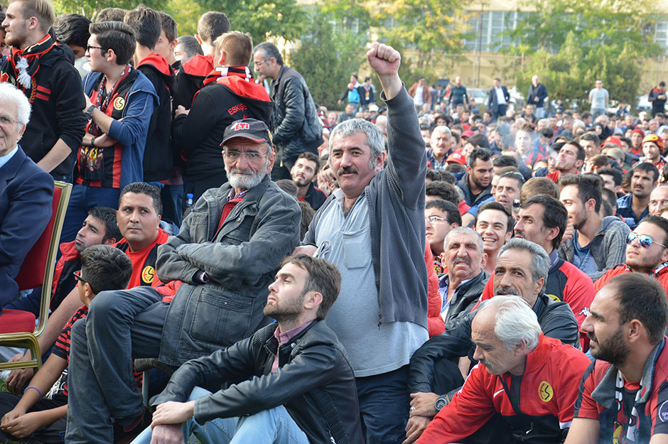 Geçen sezon saha içerisinde yaşanan olaylardan ötürü 4 maç seyircisiz oynama cezası alan Eskişehirspor taraftarı, karşılaşmayı bu kez dev ekrandan takip etti.