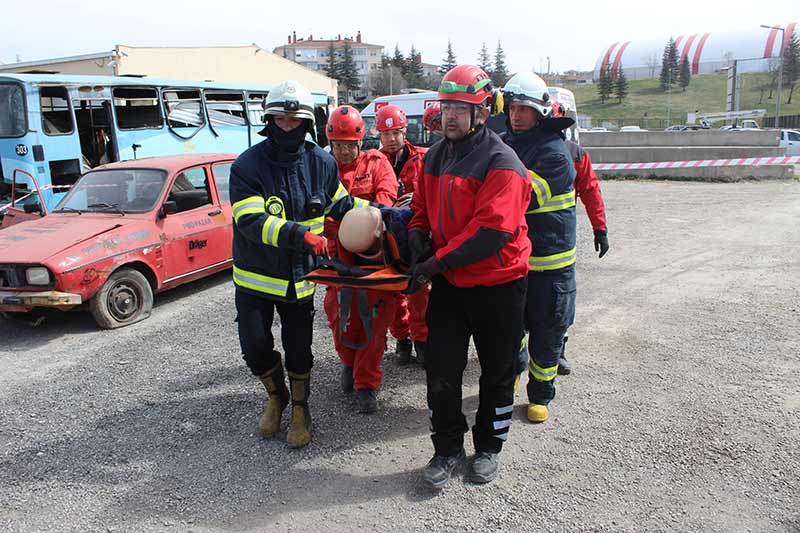 Eskişehir’de, itfaiye ve arama kurtarma ekipleri tarafından düzenlenen kaza sonrası araç içerisinde sıkışan yaralıyı kurtarma tatbikatı gerçeğini aratmadı.