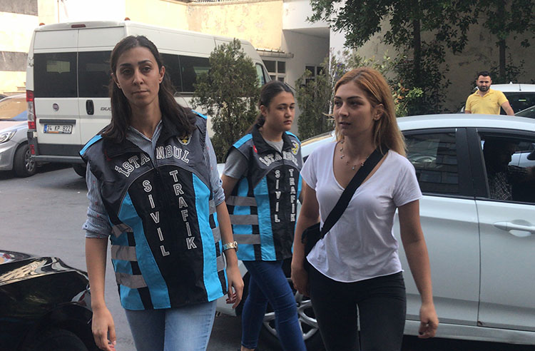 Beşiktaş Barbaros Bulvarı üzerinde trafikte motosikletle tek teker üstünde giden Eskişehir Anadolu Üniversitesi öğrencisi kadın maganda, sivil trafik ekipleri tarafından yakalandı.