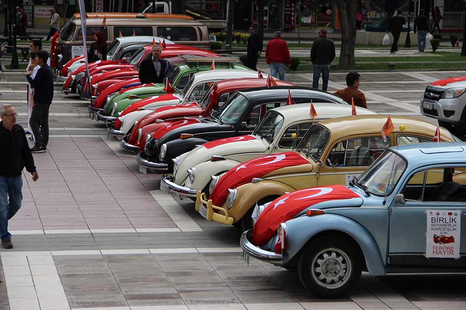 Eskişehir'de, klasik otomobil tutkunları ve öğrenciler tarafından teröre tepki amacıyla "vosvos" olarak bilinen araçlarla "teröre hayır" konvoyu düzenlendi.