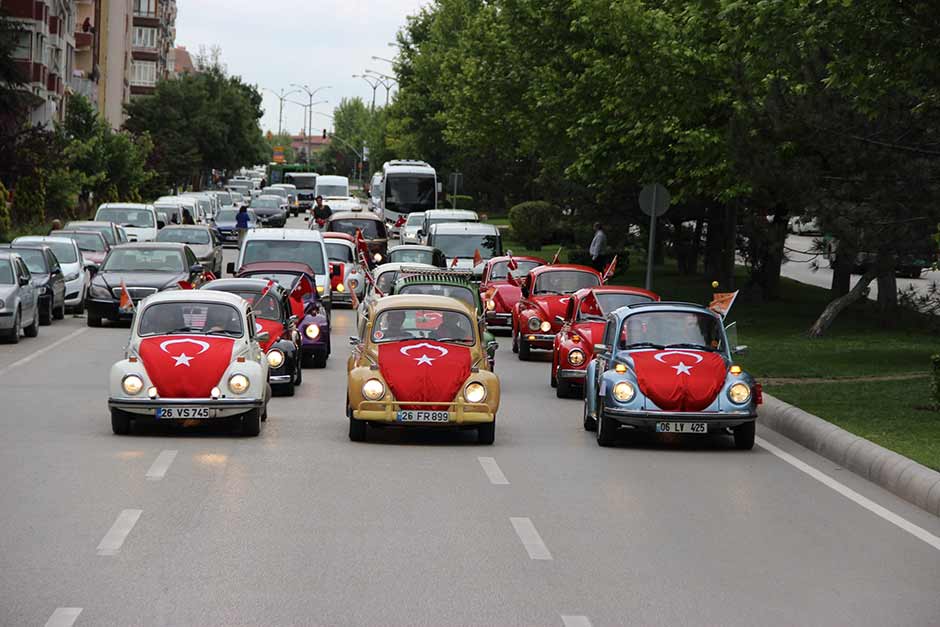 Eskişehir'de, klasik otomobil tutkunları ve öğrenciler tarafından teröre tepki amacıyla "vosvos" olarak bilinen araçlarla "teröre hayır" konvoyu düzenlendi.