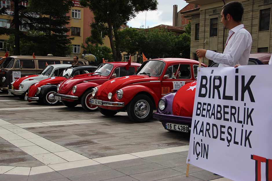 Eskişehir'de, klasik otomobil tutkunları ve öğrenciler tarafından teröre tepki amacıyla "vosvos" olarak bilinen araçlarla "teröre hayır" konvoyu düzenlendi.