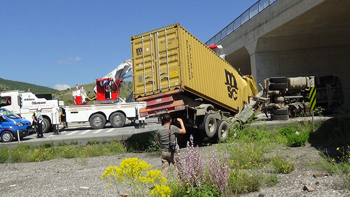 Kaynak: Tır devrildi yol trafiğe kapatıldı