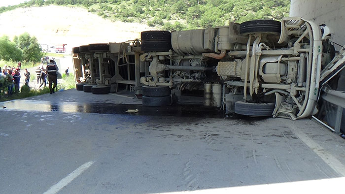Kaynak: Tır devrildi yol trafiğe kapatıldı