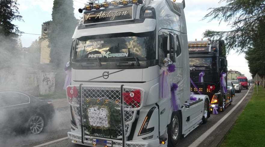 Ordulu tır sürücüleri Tanju Akdoğan ile Elif Felek evlilik kararı aldı. Her ikisi de tır kullanan çift, mesleklerine uygun bir düğüne imza attı. Gelin için beyaz tır, damat için siyah tır süslendi. Damat konvoy eşliğinde gelinin evine gitti. Buradan dualarla gelin alındı.