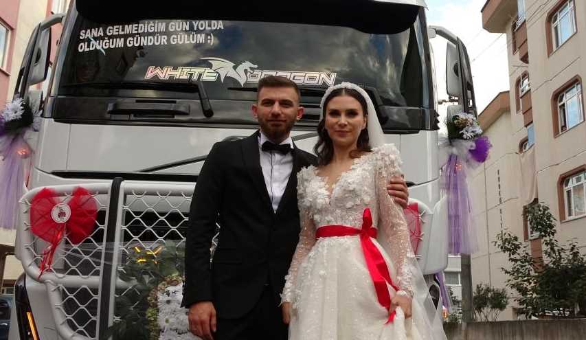 Ordu’da evlilik kararı veren Tanju Akdoğan ile Elif Felek, gelin araçları olarak 2 adet tırı süsledi. Akdoğan gibi kendisi de tır kullanan Felek, gelin arabası olarak süslenen tırın koltuğuna gelinlik ile binerek, salona gitti. Tırın direksiyonunda gelini görenler ise şaşırdı.