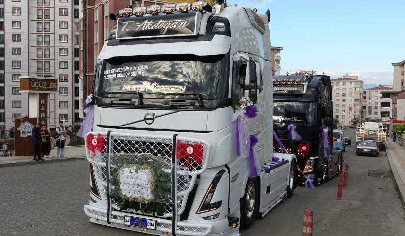 Ordu’da evlilik kararı veren Tanju Akdoğan ile Elif Felek, gelin araçları olarak 2 adet tırı süsledi. Akdoğan gibi kendisi de tır kullanan Felek, gelin arabası olarak süslenen tırın koltuğuna gelinlik ile binerek, salona gitti. Tırın direksiyonunda gelini görenler ise şaşırdı.