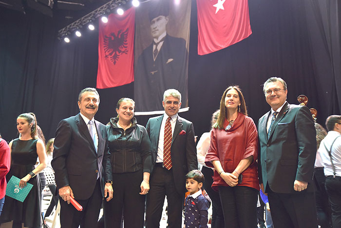 Konserde Liceu Artistik Jordan Misja Güzel Sanatlar Lisesi'nin 60 kişilik korosu, İki Elin Sesi Var Orkestrası'na iki Arnavutça, iki de Türkçe parça ile eşlik ederek salondaki coşkuya ortak oldular. Aynı liseden 10 öğrenci de yaylı çalgılarda orkestrayla birlikte çaldı.