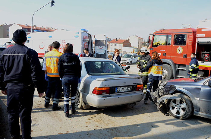 Eskişehir’de, 4 aracın karıştığı trafik kazasında 1’i hamile kadın olmak üzere 5 kişi yaralandı.