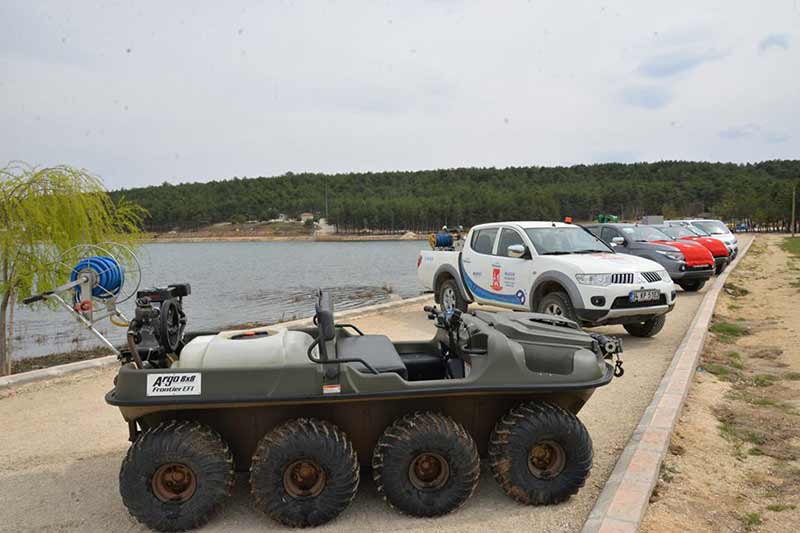 Bilecik Belediye Başkanı Selim Yağcı, Pelitözü Gölparkta suda ilaçlama yapan amfibik ilaçlama aracına binerek sazlıkları ilaçladı, çöp konteynerini de unutmadı. Türkiye'de ilk kes Bilecik'te gerçekleştirilen Ağaç Konumlandırma ve Envanter Sistemi ile tüm ağaçları artık koruma altına alındı.