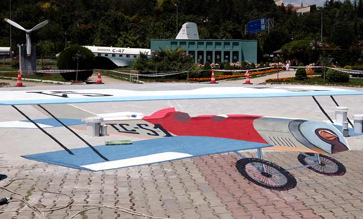 Dünyaca ünlü sokak resmi sanatçısı Alex Maksiov, Anadolu Üniversitesi (AÜ) Havacılık Parkı'na ilk Türk sivil uçağı VECİHİ XIV'ün 3 boyutlu resmini çizmeye başladı.