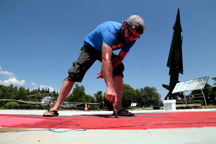 Dünyaca ünlü sokak resmi sanatçısı Alex Maksiov, Anadolu Üniversitesi (AÜ) Havacılık Parkı'na ilk Türk sivil uçağı VECİHİ XIV'ün 3 boyutlu resmini çizmeye başladı.